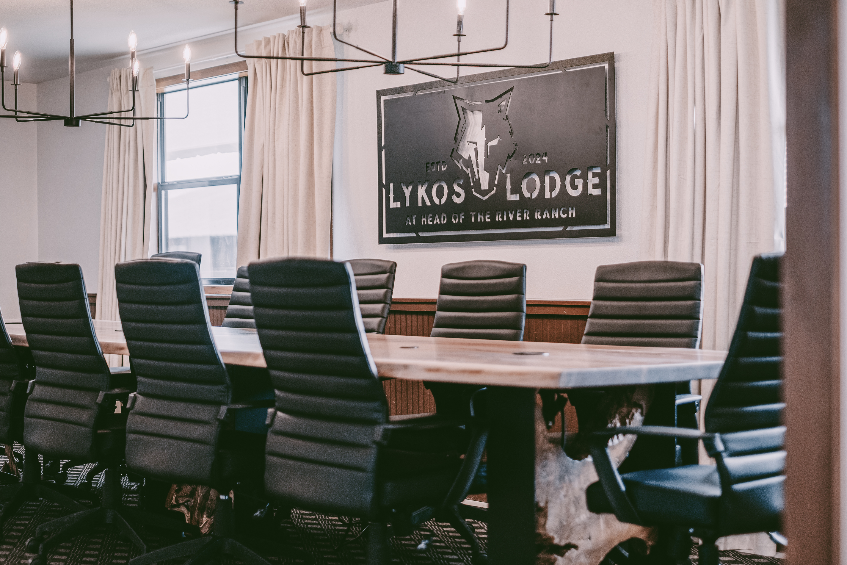 The installation speaks volumes: rifles displayed with museum precision, the wolf presiding over both boardroom and bunkhouse with equal authority. This is design doing what Collins advocates—making transformation visible. Every touchpoint reinforces the central promise: here, business isn't separate from life; it's elevated by it.